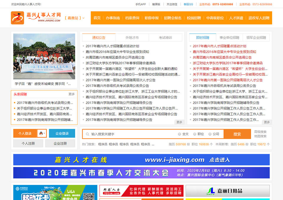 嘉興人才網( www.573job.com ),為用人單位和個人提供便捷、高效的互動平臺,現如今網站日均訪問量15萬次,擁有會員企業1萬余家,在招職位5萬余個,為人才和企業提供更優質的互動平臺!